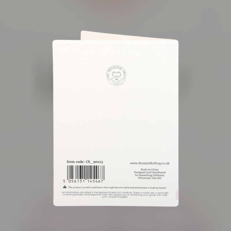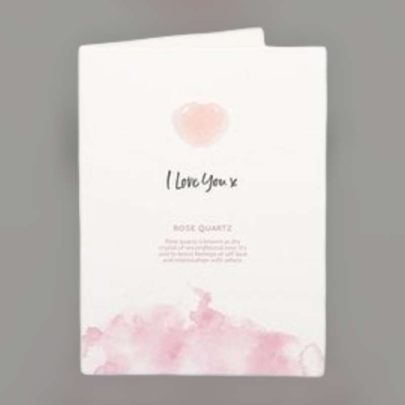 Het bevat een klein rozenkwartshart dat is bevestigd aan een kaart met de tekst 'I love you x'. Rozenkwarts staat bekend als de steen van onvoorwaardelijke liefde, brengt warmte en helpt relaties te versterken.