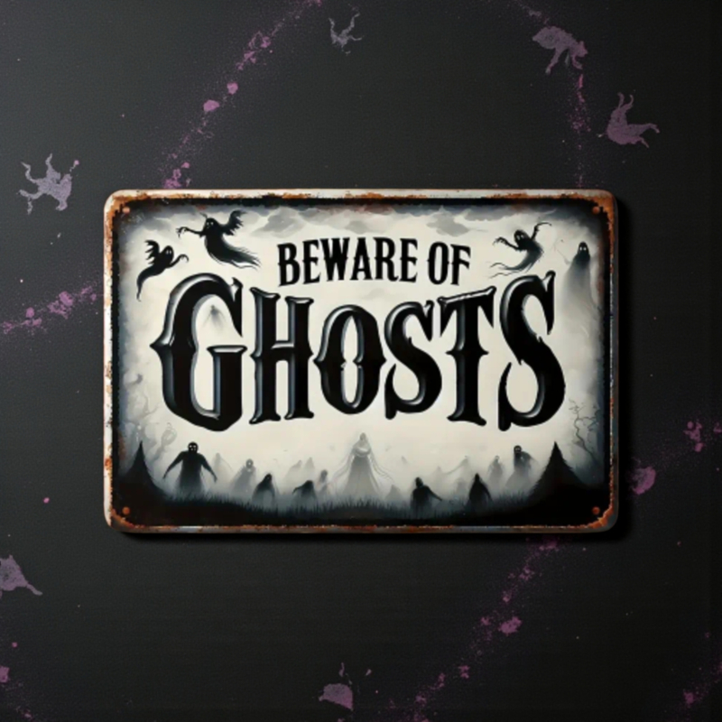 Beware of Ghosts BordjeDeze beware of ghost bordje waarschuwt jouw gasten bij binnenkomst voor spookachtige taferelen.